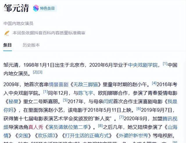 可能这也是她深受观众喜欢的原因之一吧,在闫妮的身上,总是可以感到一种韧劲。 这种感觉,可能是其跑了十年龙套依然热爱舞台,是红了十年依然接受新的挑战所带来的吧。 值得一提的是,她的女儿如今也成为了一名演员!邹元清第一次出现在荧幕,似乎是在2009年。